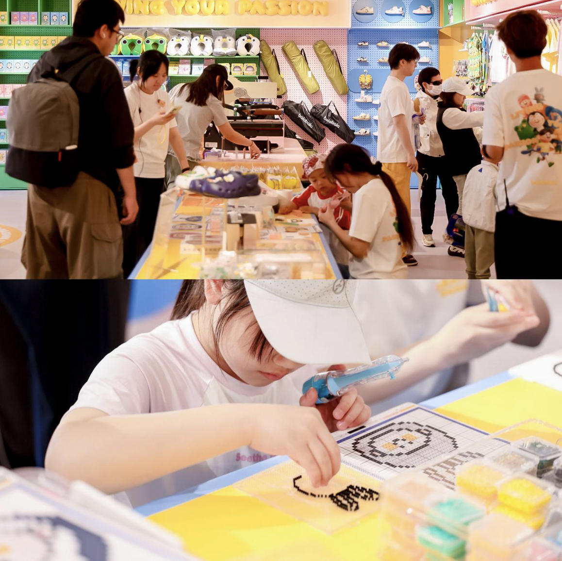 首创“上海Style”多品类DIY定制服务(服装烫印、洞洞鞋鞋花、拼豆手作),打造沉浸式消费体验;